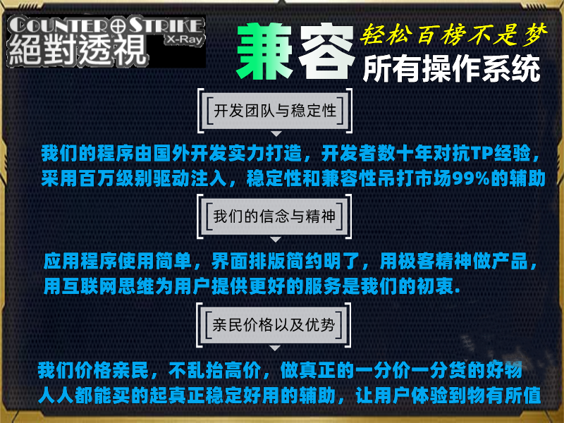 子弹追踪+人物方框透视+一键鬼跳+支持盲狙 可任意开关